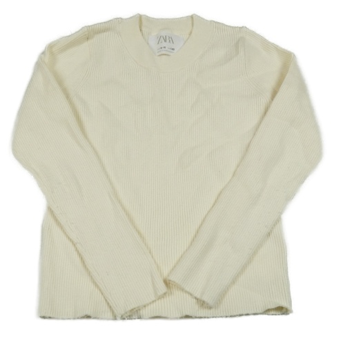 Smetanový žebrovaný úpletový crop svetr ZARA