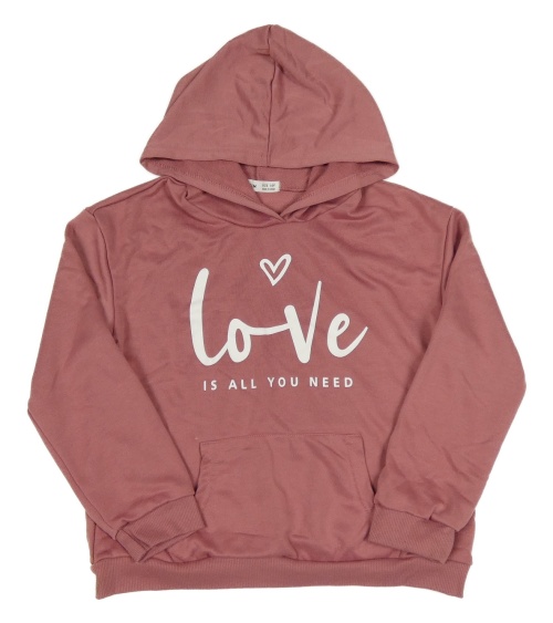 Starorůžová mikina s nápisem se srdcem a kapucí Shein