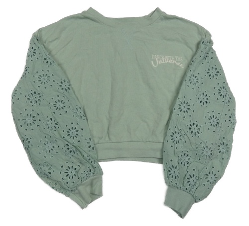 Zelenomodrá crop mikina s nápisem a madeirou River Island