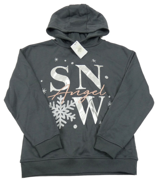Nové - tmavošedá mikina s nápisy a vločkami a kapucí PRIMARK