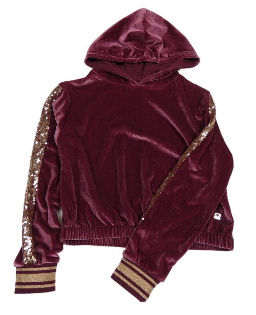 Tmavorůžová sametová crop mikina s flitry a kapucí Blukids