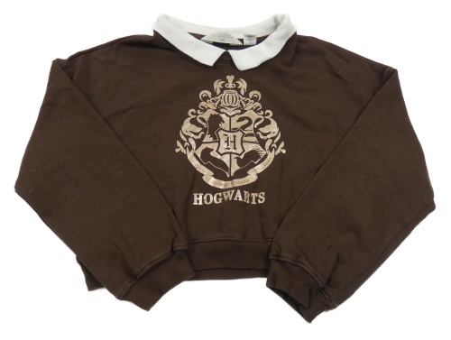 Čokoládová crop mikina s potiskem a límečkem H&M