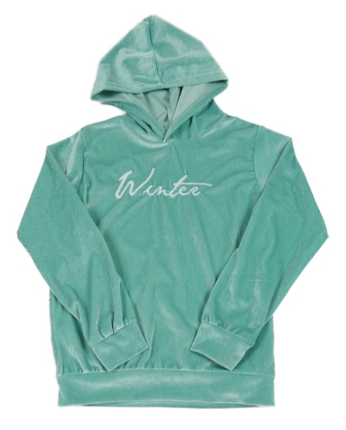 Mintová sametová mikina s nápisem a kapucí
