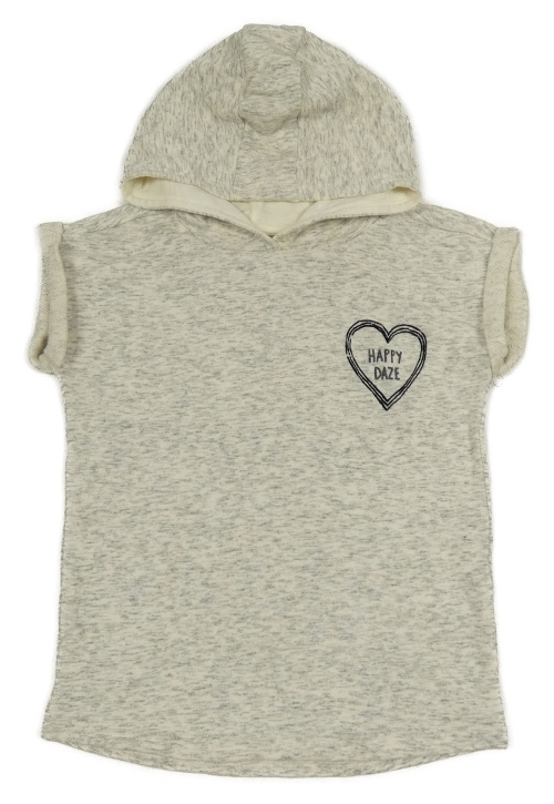 Šedo-smetanová melírovaná tepláková vesta se srdíčkem s nápisy a kapucí Next