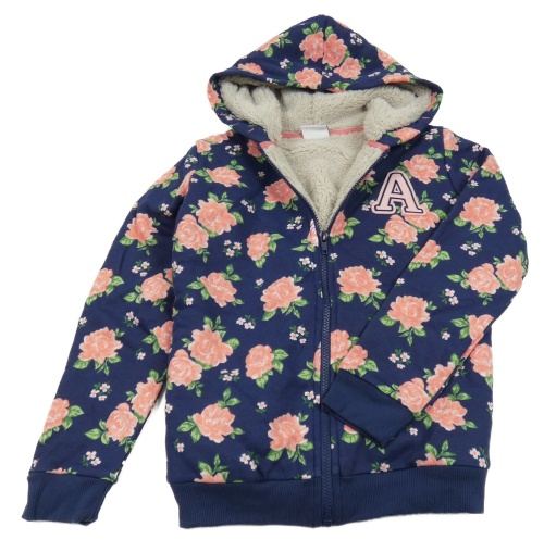 Tmavomodrá květovaná zateplená propínací mikina s písmenem a kapucí Pocopiano