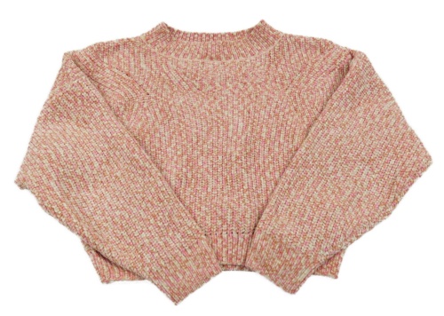 Růžovo-světlebéžovo-hnědý melírovaný žinylkový oversize crop svetr H&M
