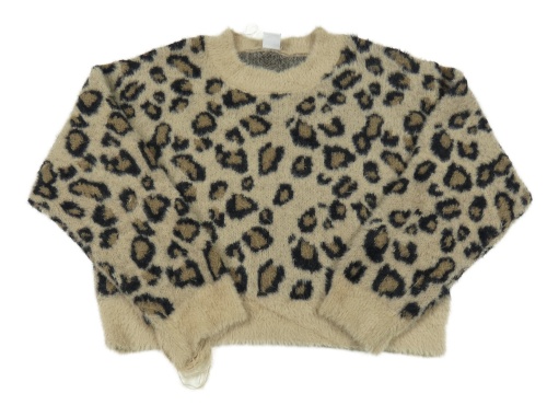 Hnědý chlupatý crop svetr s leopardím vzorem Lindex