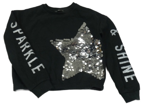 Černé crop mikina s nápisy a hvězdou z flitrů C&A