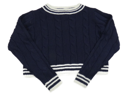 Tmavomodro-bílý vzorovaný crop svetr Y.F.K.