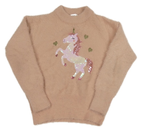 Růžový chlupatý svetr s jednorožcem C&A
