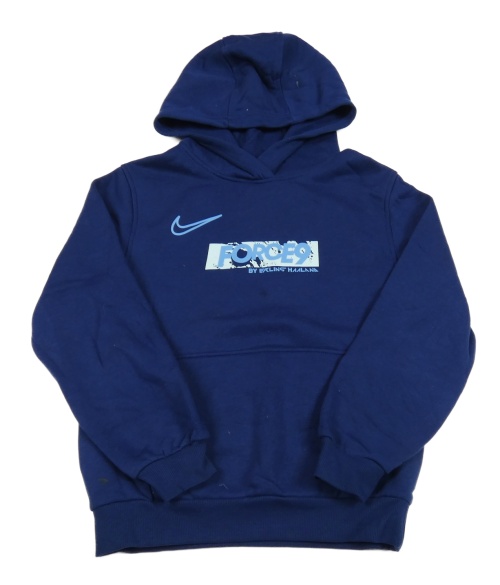 Tmavomodrá mikina s nápisem a logem a kapsou a kapucí Nike