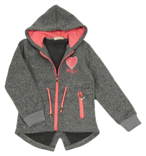 Šedá melírovaná pletená propínací mikina se srdcem s kamínky a kapucí