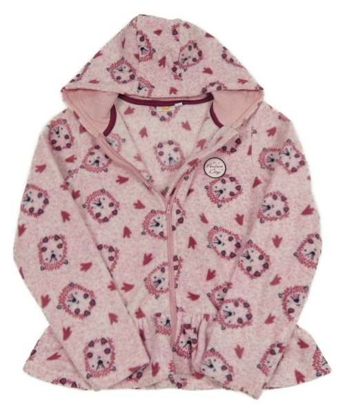 Růžová melírovaná fleecová propínací mikina s ježky a kapucí Kids