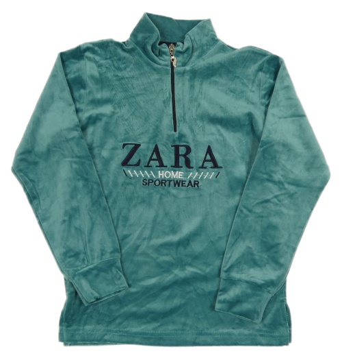 Modrozelená plyšová mikina s nápisy