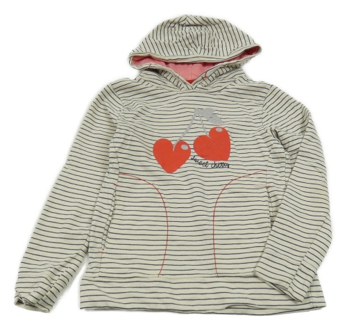 Béžovo-černá pruhovaná mikina se srdíčky a kapucí Yigga