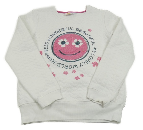 Bílá vyteplená mikina se smajlíkem a nápisy a prošívanými srdíčky Kids