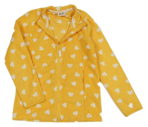 Hořčicová fleecová propínací mikina se srdíčky Kids