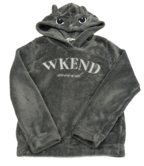 Tmavošedá plyšová mikina s nápisy a kapucí - kočička H&M