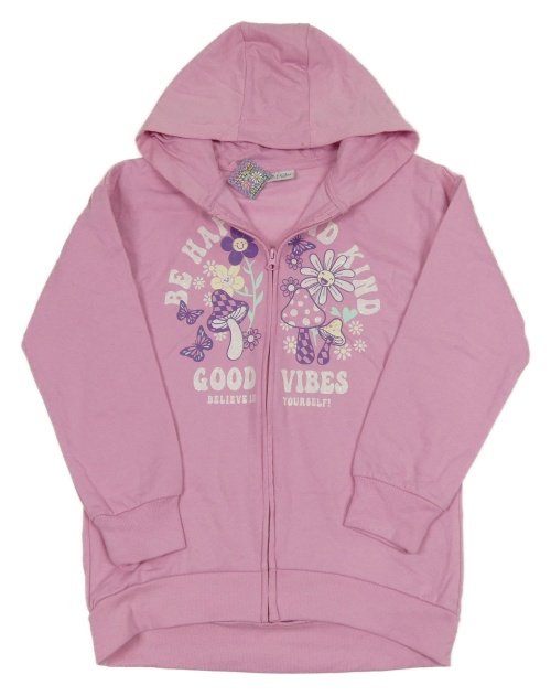 Růžová propínací mikina s houbami s květy a kapucí Young Idols
