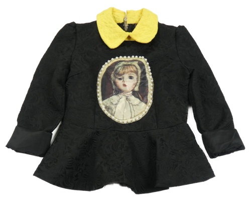 Černá vzorovaná teplá podšitá tunika s holčičkou a korálky a žlutým límečkem