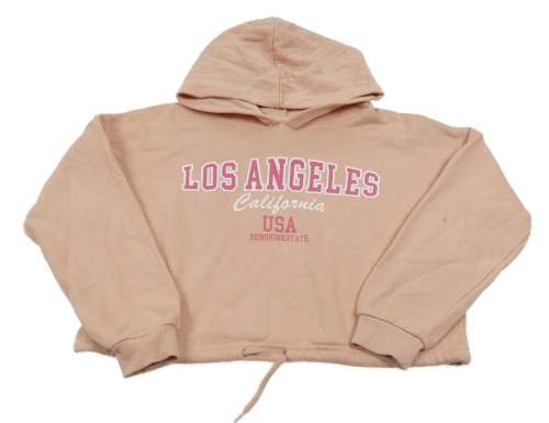Pudrová oversize crop mikina s nápisy a kapucí JEFF&CO