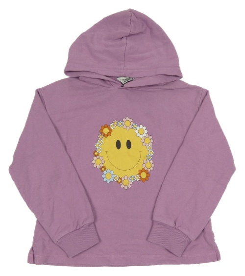 Lila mikina se smajlíkem a kapucí