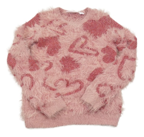 Starorůžový chlupatý svetr se srdíčky L&D