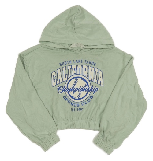 Světleolivová crop mikina s míčkem a nápisy a kapucí H&M