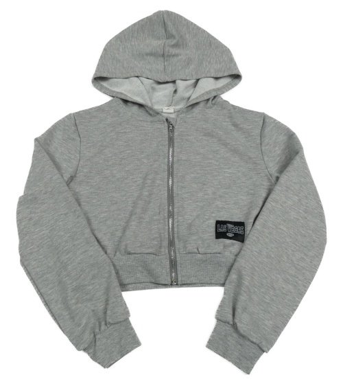 Šedá crop propínací mikina s nášivkou a kapucí Shein