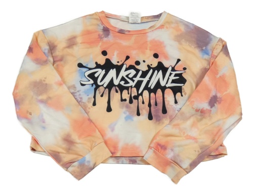 Meruňkovo-korálovo-modrá batikovaná crop mikina s nápisem