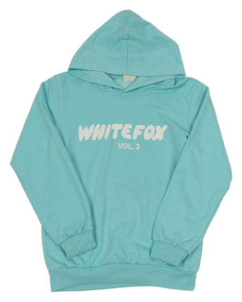 Tyrkysová mikina s nápisem a kapucí