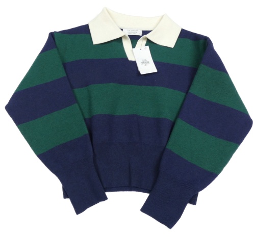 Nové - Tmavomodro-zelený pruhovaný vlněný crop svetr s límečkem Primark