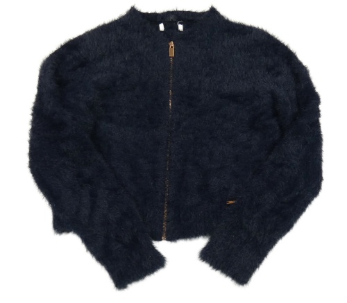 Tmavomodrý chlupatý propínací crop svetr