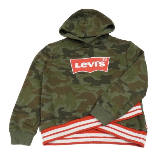 Khaki-army-červená mikina s logem a pruhy a kapucí Levi´s