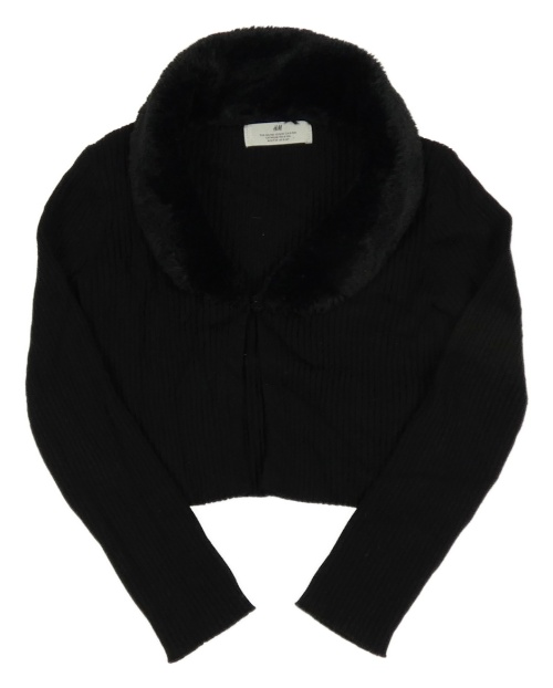 Černý žebrovaný propínací crop svetr s kožešinou H&M
