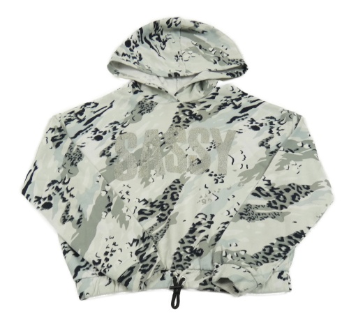 Mintovo-bílo-černá crop mikina s leopardím vzorem a nápisem a kapucí River Island