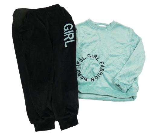 2 set - černé plyšové tepláky s nápisem + zelená plyšová mikina s nápisem
