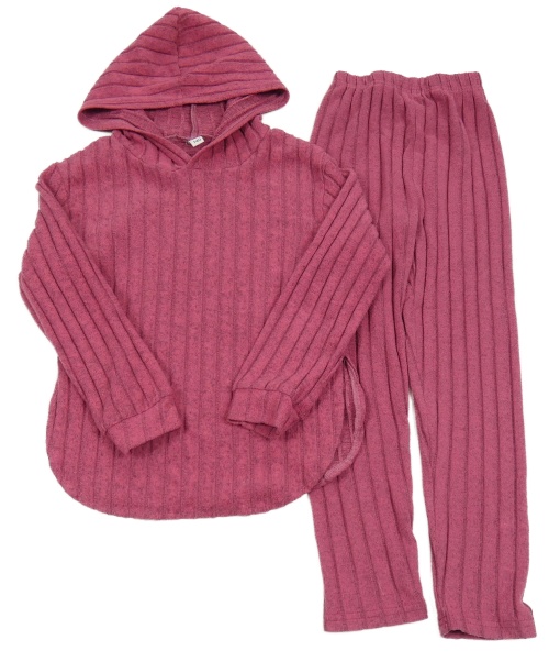 2Set - Tmavorůžové melírované žebrované úpletové mikinotriko s nášivkou + legíny