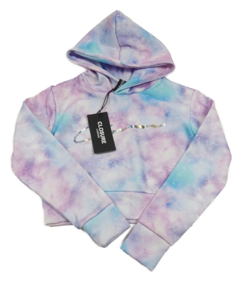 Nové - růžovo-modro-fialová crop mikina s logem a kapucí