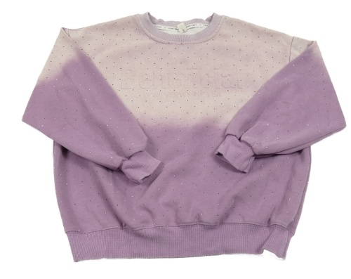 Světlefialovo-fialová oversize mikina s 3D nápisy a kamínky