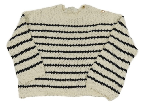 Smetanovo-černý pruhovaný oversize svetr s gombíky H&M
