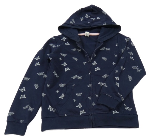 Tmavomodrá propínací mikina s motýlky a kapucí Yigga