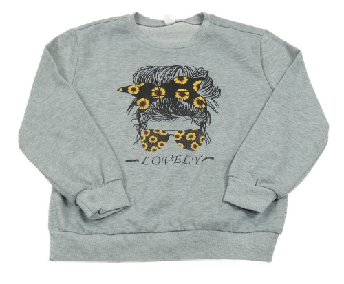 Šedá mikina s dívkou s brýlemi a slunečnicemi Shein