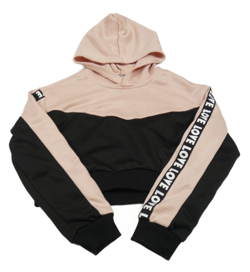 Světlerůžovo-černá sportovní crop mikina s nápisy a kapucí Shein