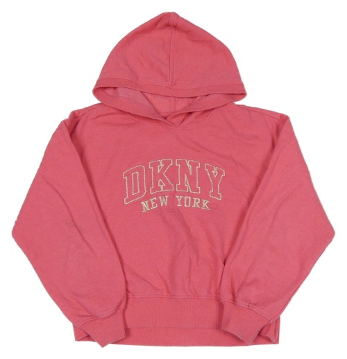 Růžová mikina s nápisem a kapucí DKNY