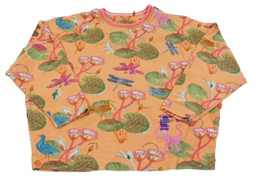 Světleoranžová oversize mikina s kytičkami a zvířátky oilily