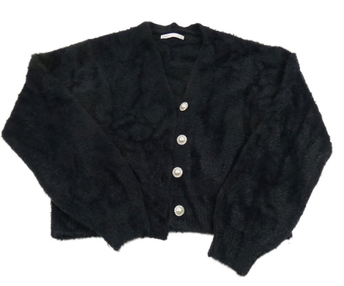 Černý crop propínací chlupatý svetr only