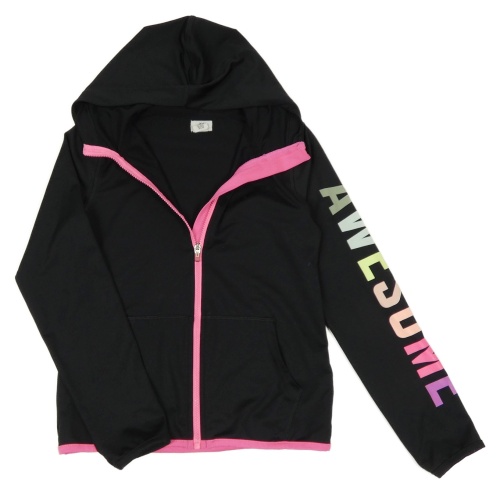Černo-neonově růžová propínací sportovní mikina s nápisem a kapucí H&M