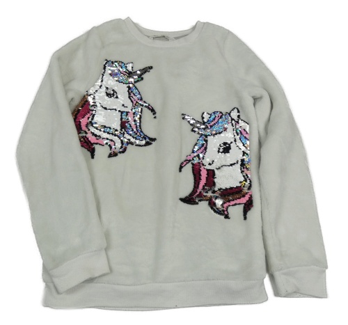 Smetanová plyšová mikina s jednorožci z flitrů H&M