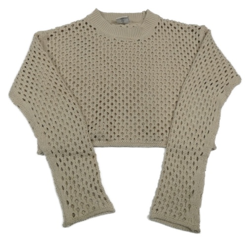 Světlebéžový perforovaný pletený crop svetr Page one young